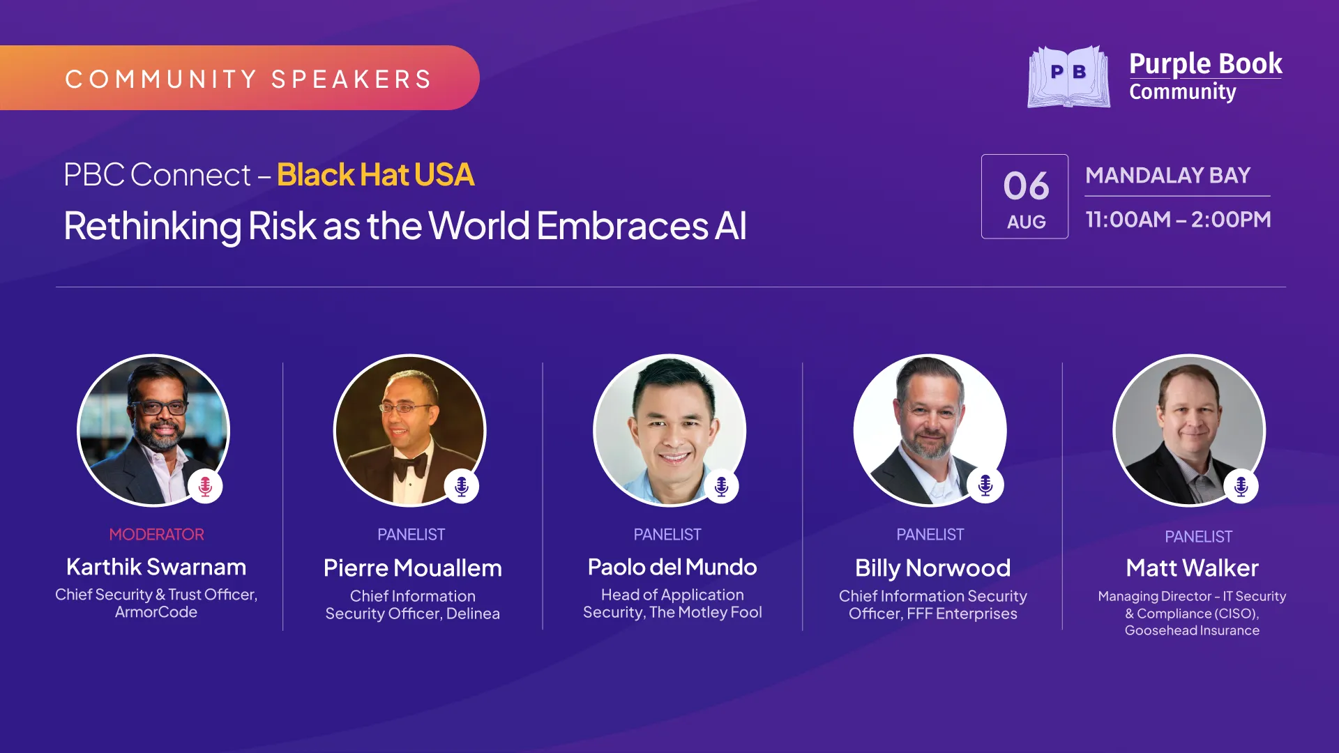 Learn, connect, and celebrate with members of The Purple Book Community at our next premier event designed for security leaders and practitioners to engage in high-impact discussions shaping the future of cybersecurity.